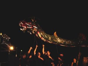 【概要】 夏の夜に行われる祭りです。清姫の化身という20mの大蛇が火を吹きながら会場を練り歩きます。 花火は特に見所であり会場は満員になります。 |